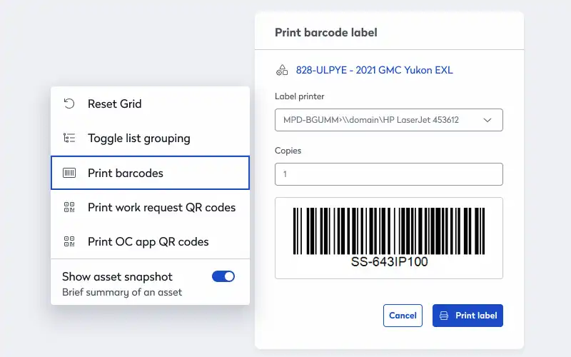 Modern asset management platforms provide barcode scanning capabilities that enable your technicians to quickly access critical equipment data, open work orders, maintenance history, photos, manuals, and other documents. When your technician arrives at a malfunctioning injection molding machine, they can scan the equipment barcode with their mobile device and instantly see the last three repairs, current parts inventory, and OEM troubleshooting guides.